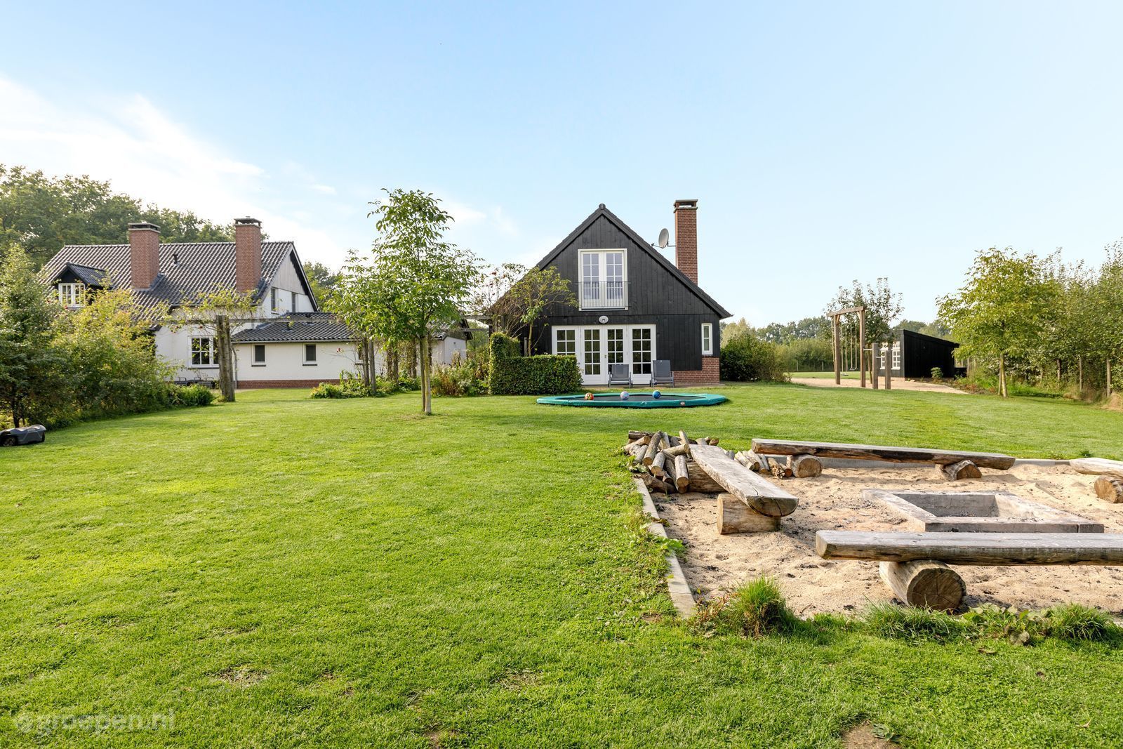 Would you like to rent a nature house? This group accommodation in Overijssel is located in a new nature reserve, centrally located in Overtoom, Middelveen and is suitable for groups up to 15 people. The beautiful Sallandse Heuvelrug is just steps away from this accommodation. This luxury nature cottage is perfect for a family or friends weekend, as well as team building activities. The accommodation is surrounded by a natural garden where you can engage in activities such as volleyball and soccer. Also come play a game of table tennis, darts and badminton in the extra-large recreation room. Did you know that you can also play a typical Twents game of ‘klootschieten’. Experience a wonderful weekend away with friends, family or colleagues during your vacation in nature.