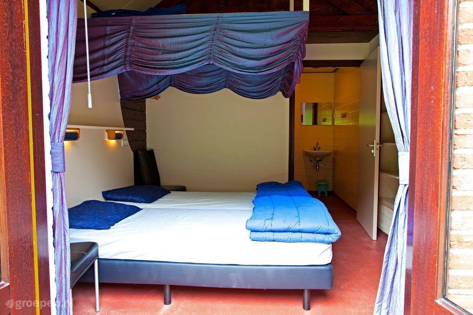 For those who love the outdoors, glamping in a nature cottage is an absolute must! This group accommodation in North Holland consists of five large 4-person safari tents. The glamping tents have their own jetty/terrace with garden furniture by the water. Have fun in the large atmospheric oriental tent, where you can listen to music and just sit together until late at night. You can also enjoy a boat ride equipped with cooler. These are free of charge. The common room has a pool table, table tennis, trampoline, bouncy castle and whirlpool. Choose a nature cottage rental in the form of glamping and we wish you lots of fun in your group accommodation in nature!