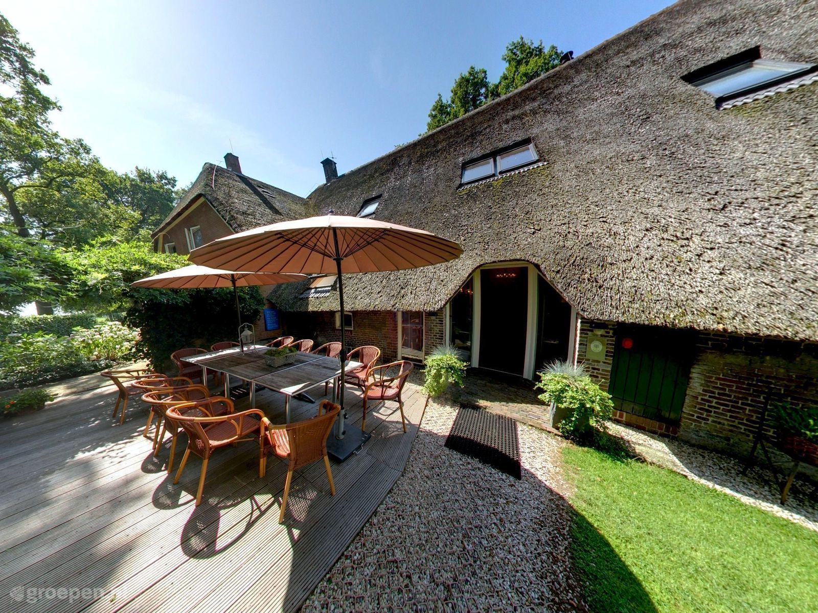 Always wanted to stay in a vacation farm? Then this is your chance! This nature cottage has a thatched roof and can accommodate 14 people. This nature cottage in Overijssel is equipped with all conveniences and comforts. Entertain yourself with a good book; there is a wide selection of books in the bookcase. Or go play old-fashioned board games present in the game closet. You are in the middle of nature and can hike, run or bike right from the yard. Did you know you can spot deer, pheasants and squirrels here? The sunrise is often spectacular. An inspiring place to find peace. So experience a nice stay together in this vacation home in nature.